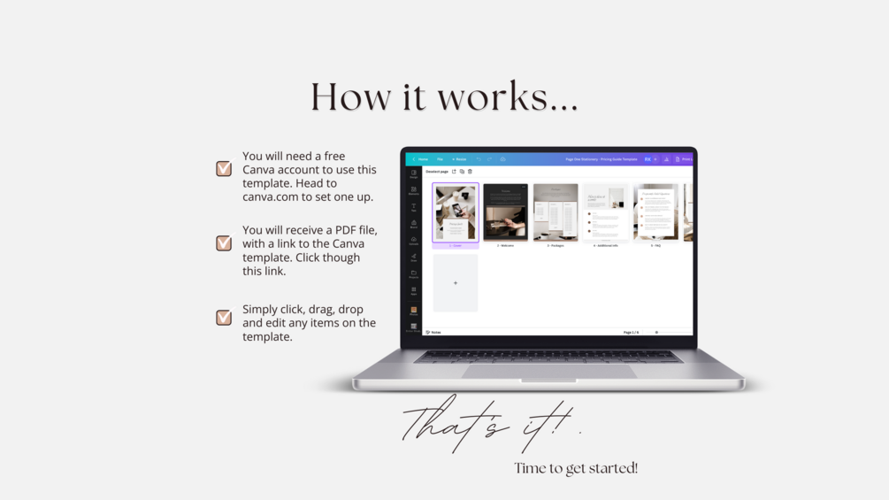 You'll receive a PDF with a link to your customizable Canva template.
