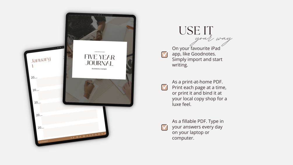This is a digital product. Upon purchase, you'll receive a PDF download including a link to Google Drive where both journals are available for download.