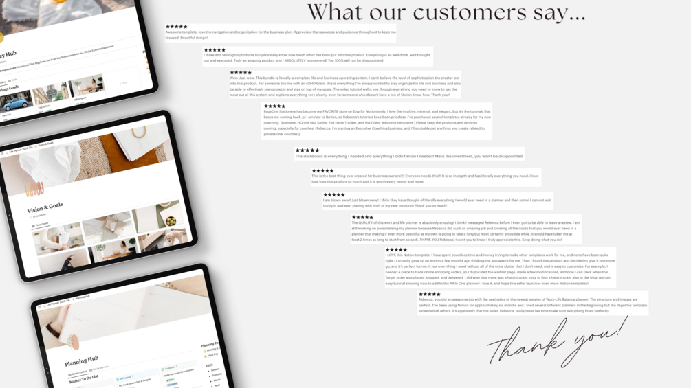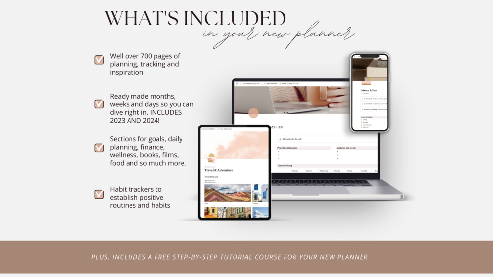 A PDF document linking to your new Notion dashboard, as well as instructions on how to get your tutorials!