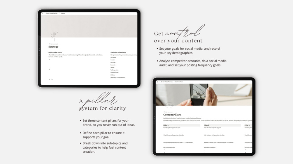 Guiding you from the foundations of creating content pillars and strategy, all the way through to developing the content, this template has you covered. Plus, there are 20 free content ideas for small businesses included, to ease your workload and fuel your creative juices.
