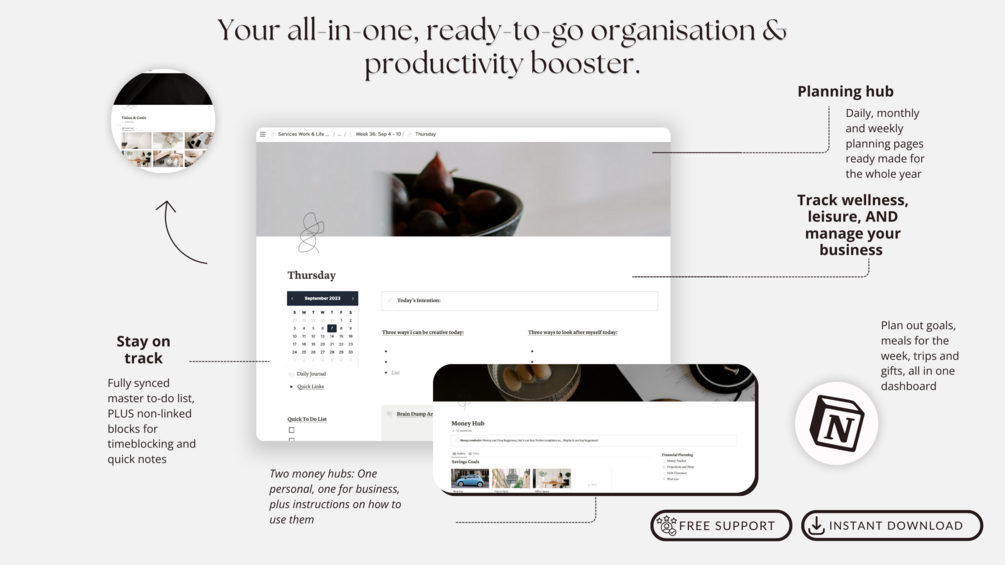 Welcome to the 2024 edition of the ultimate Work/Life Notion planner tailored for service-based businesses!
