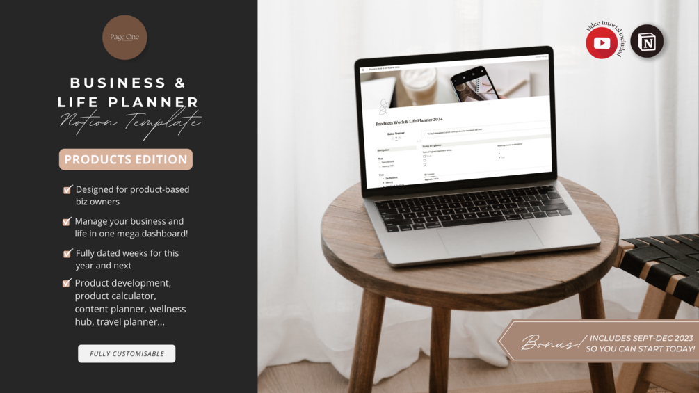 Introducing the 2024 edition of the ultimate Business & Life Notion Planner for Etsy Sellers and Product-Based Business Owners!
